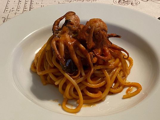 CALAMARATA DI TOTANI E CREMA DI MELANZANE